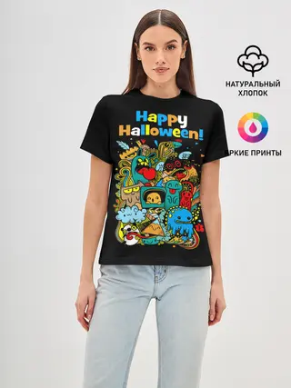 Женская футболка оверсайз / Монстры празднуют Хеллоуин
