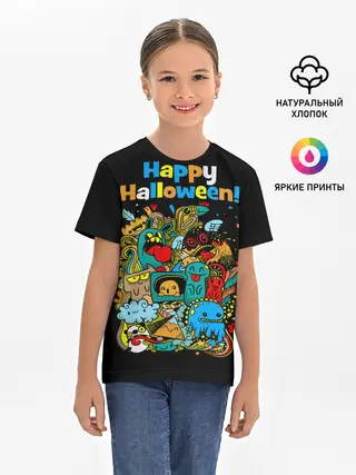 Детская базовая футболка / Монстры празднуют Хеллоуин