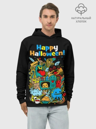 Худи мужской база хлопок / Монстры празднуют Хеллоуин