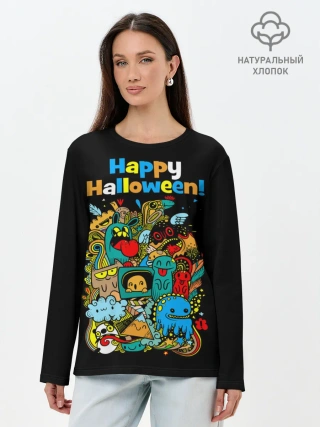 Лонгслив женский. Хлопок / Монстры празднуют Хеллоуин