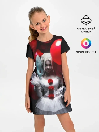 Женская футболка оверсайз / Плохая девочка с красными шарами