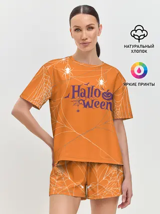 Женская пижама с шортами / ПАУТИНКА НА ХЭЛЛОУИН