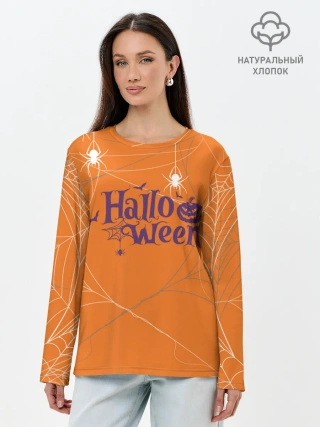 Лонгслив женский. Хлопок / ПАУТИНКА НА ХЭЛЛОУИН
