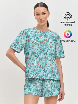 Женская пижама с шортами / Зимний Лесной Пейзаж