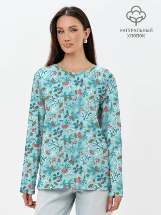 Лонгслив женский. Хлопок / Зимний Лесной Пейзаж