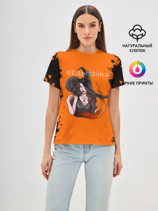 Женская базовая футболка / ВЕДЬМОЧКА НА ХЕЛЛОУИН