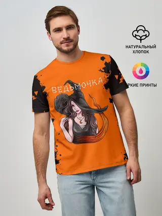 Мужская базовая футболка / ВЕДЬМОЧКА НА ХЕЛЛОУИН