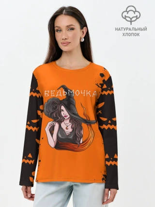 Лонгслив женский. Хлопок / ВЕДЬМОЧКА НА ХЕЛЛОУИН