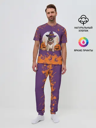 Мужская пижама с брюками / МОПС НА ХЭЛЛОУИН