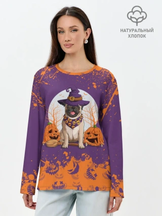 Лонгслив женский. Хлопок / МОПС НА ХЭЛЛОУИН