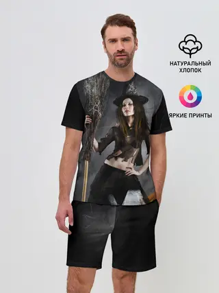 Мужская футболка оверсайз / Милая ведьма с метлой