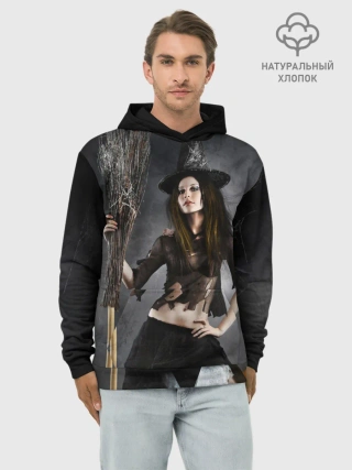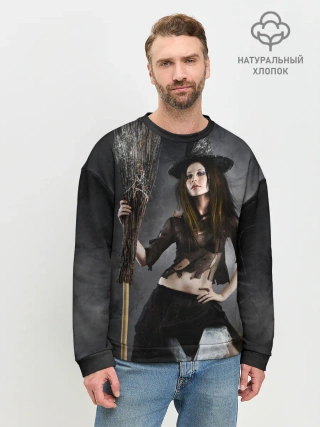 Мужской лонгслив базовый / Милая ведьма с метлой