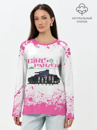 Лонгслив женский. Хлопок / Девушки и танки | Pink