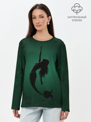 Лонгслив женский. Хлопок / Русалка силуэт