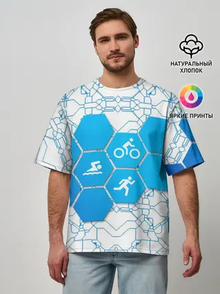 Мужская футболка оверсайз / Плыви, Крути, Беги