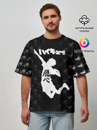 Мужская футболка оверсайз / Fly high иероглифами | Haikyuu!!