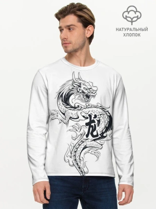 Мужской лонгслив базовый / Китайский дракон на белом фоне