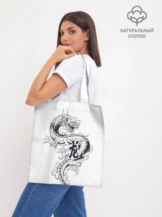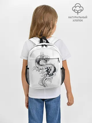 Рюкзак джинсовый / Китайский дракон на белом фоне