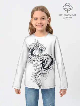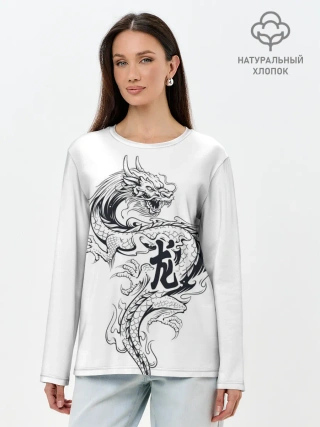 Лонгслив женский. Хлопок / Китайский дракон на белом фоне