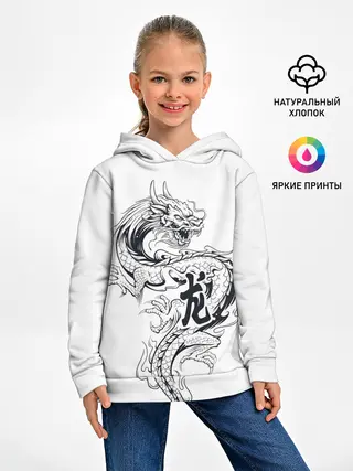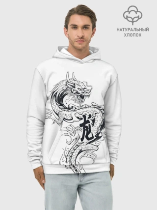 Худи мужской база хлопок / Китайский дракон на белом фоне