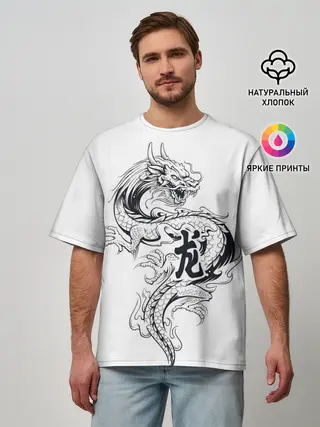 Мужская футболка оверсайз / Китайский дракон на белом фоне