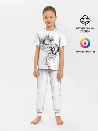 Детская пижама с брюками / Китайский дракон на белом фоне