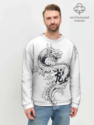 Мужской свитшот базовый / Китайский дракон на белом фоне