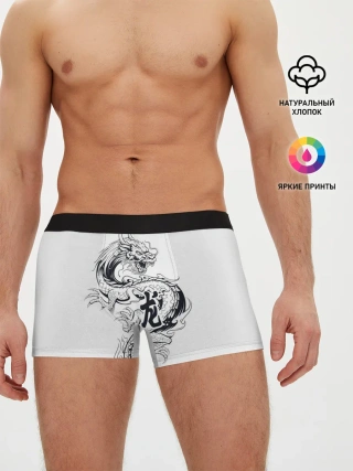 Мужские трусы боксеры / Китайский дракон на белом фоне