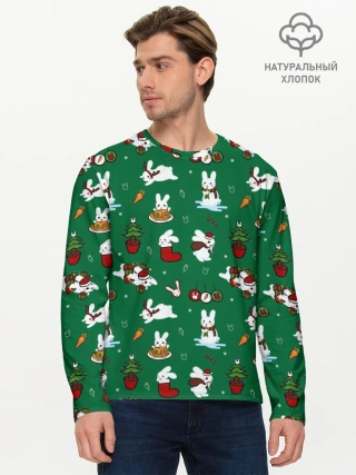 Мужской лонгслив базовый / Новогодний паттерн с зайчиками