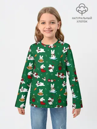 Детский лонгслив / Новогодний паттерн с зайчиками