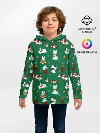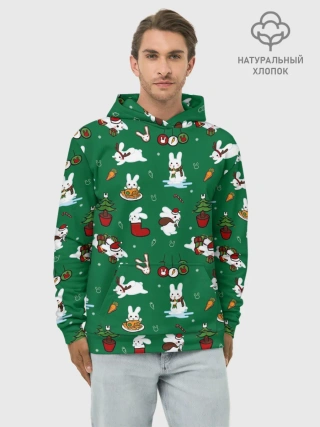 Худи мужской база хлопок / Новогодний паттерн с зайчиками