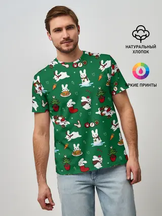 Мужская базовая футболка / Новогодний паттерн с зайчиками