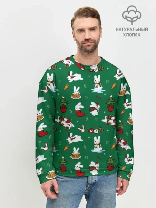 Мужской свитшот базовый / Новогодний паттерн с зайчиками