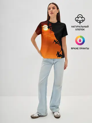 Женская базовая футболка / СКАЛОЛАЗЫ В ЗАКАТЕ