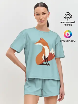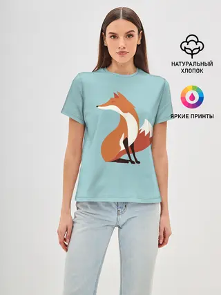 Лонгслив женский. Хлопок / Лисичка минималистичная