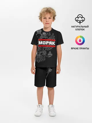 Детская пижама с шортами / Моряк белый герб РФ