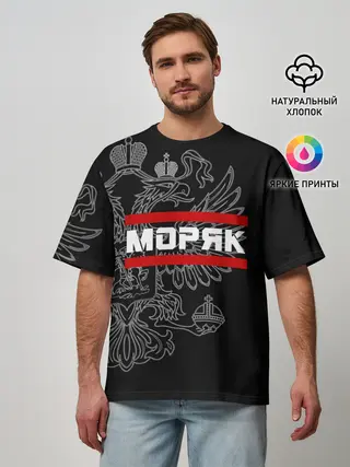 Мужская футболка оверсайз / Моряк белый герб РФ