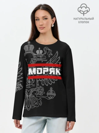 Лонгслив женский. Хлопок / Моряк белый герб РФ
