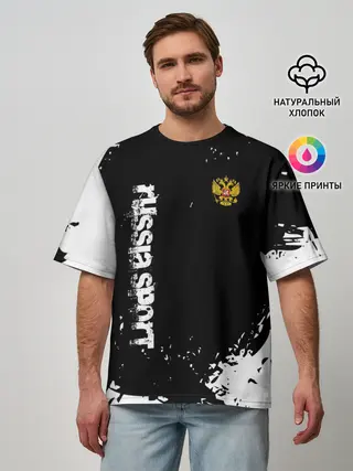Мужская футболка оверсайз / РОССИЯ БРЫЗГИ | RUSSIA PAINTS