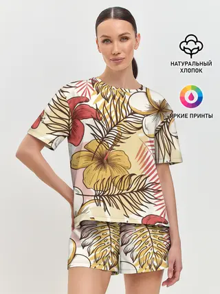 Женская футболка оверсайз / ЦВЕТОЧНЫЙ ОРНАМЕНТ