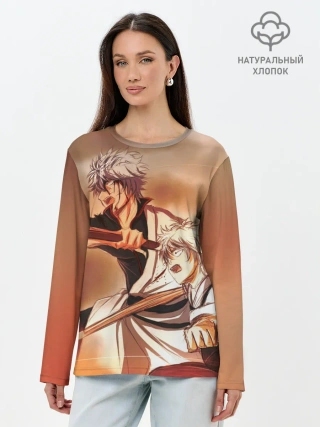 Лонгслив женский. Хлопок / гинтоки саката самурай