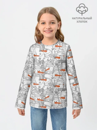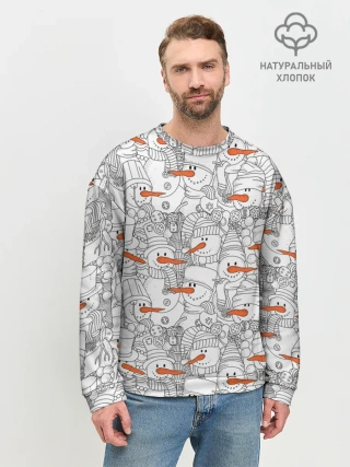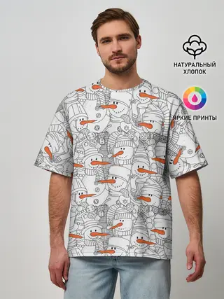 Женская футболка оверсайз / Снеговики, снежинки и снег
