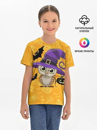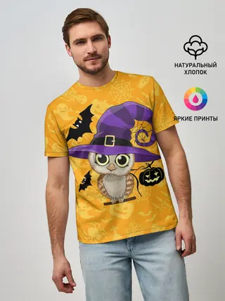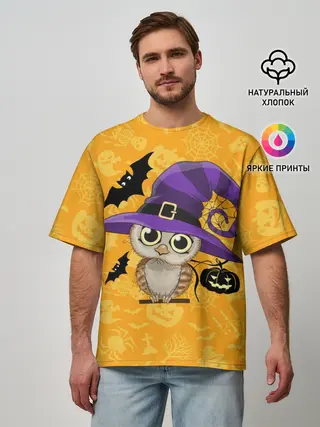 Мужская футболка оверсайз / Совушка и хэллоуин