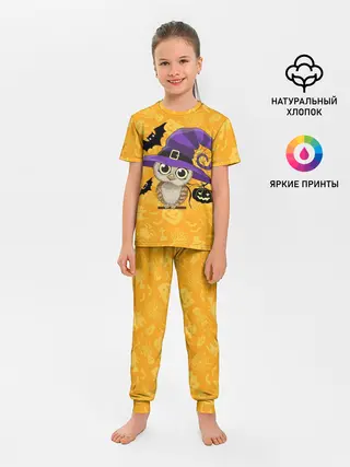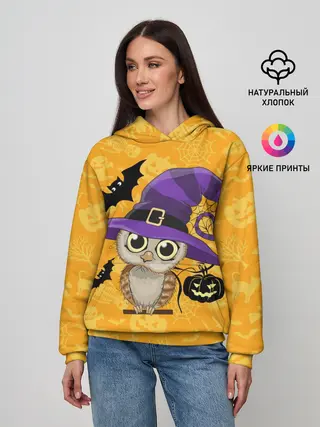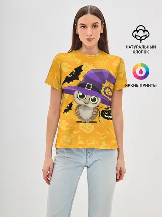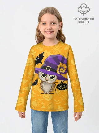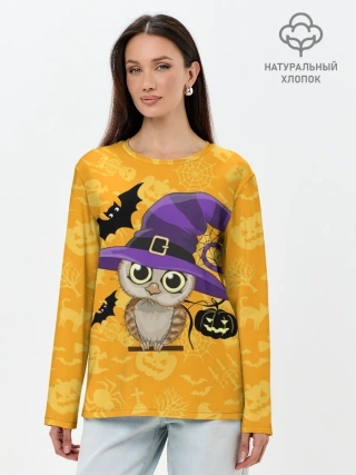 Лонгслив женский. Хлопок / Совушка и хэллоуин