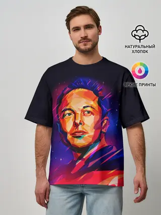 Мужская футболка оверсайз / Яркий Илон Маск