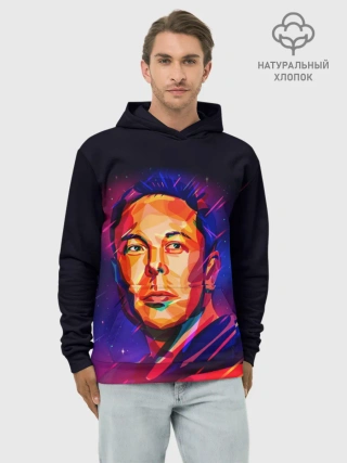 Худи мужской база хлопок / Яркий Илон Маск