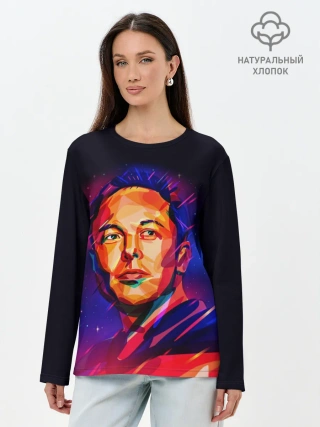 Лонгслив женский. Хлопок / Яркий Илон Маск