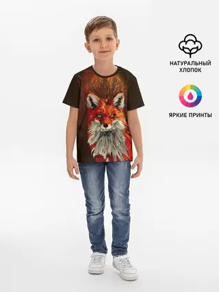 Женская футболка оверсайз / Лисенок нюхает цветок