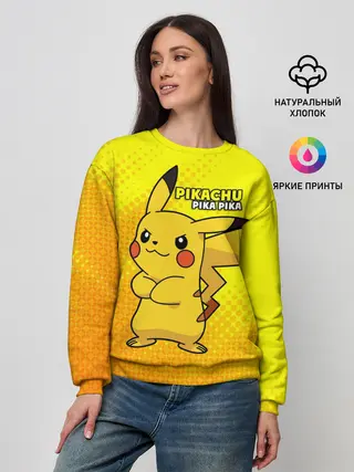 Лонгслив женский. Хлопок / Pikachu Pika Pika