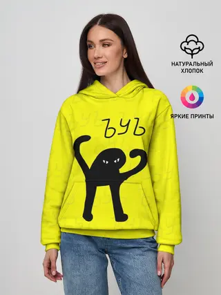 Женская футболка оверсайз / КОТ ЪУЪ СЪУКА | NEON